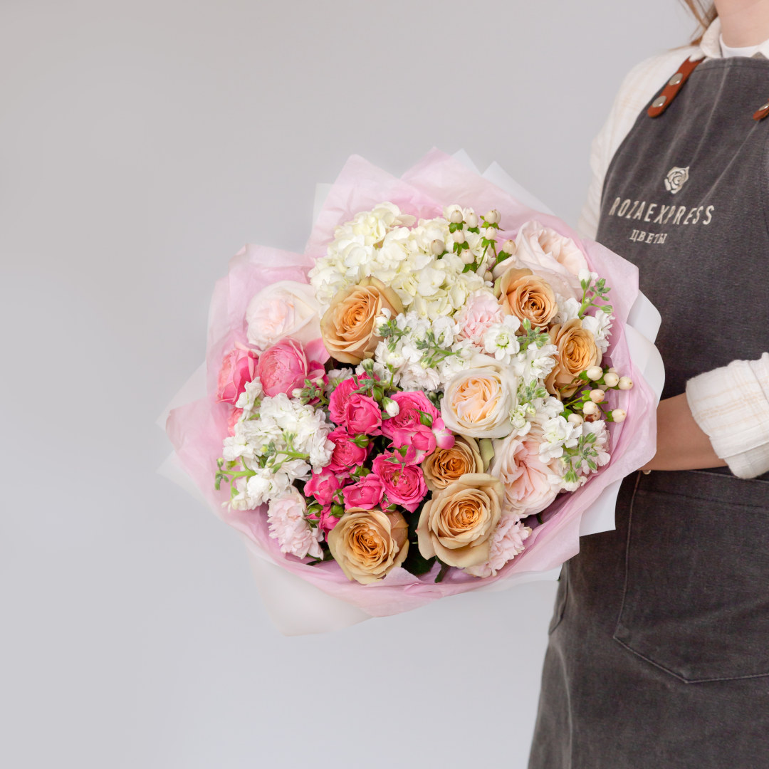 Микс из гортензий и кустовых роз