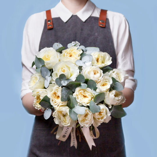 Французская садовая роза с тонким ароматом (Вайт Охара) 15шт, эвкалипт.